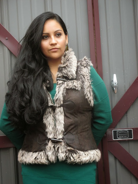 I will try not to wear all black, for a while at least....(here, and here ) So for starters, how about some green and brown? I have had this dress for at least 2 years and I have never worn it! Why you ask? Why would I not wear a lovely Max Studio dress that I got for an even lovelier $7.00?? Because I am a chicken. It was always too dressy, didn't fit right, didn't go with anything, too hot, too cold, etc.. I would use every excuse not to put it on. Let me just say those days will be over! I will be fearless! Ok, maybe not fearless, after all it is just clothing, but you get the point. I will slowly come out of my closet shell. Want to come along? I need someone to hold my hand... :)